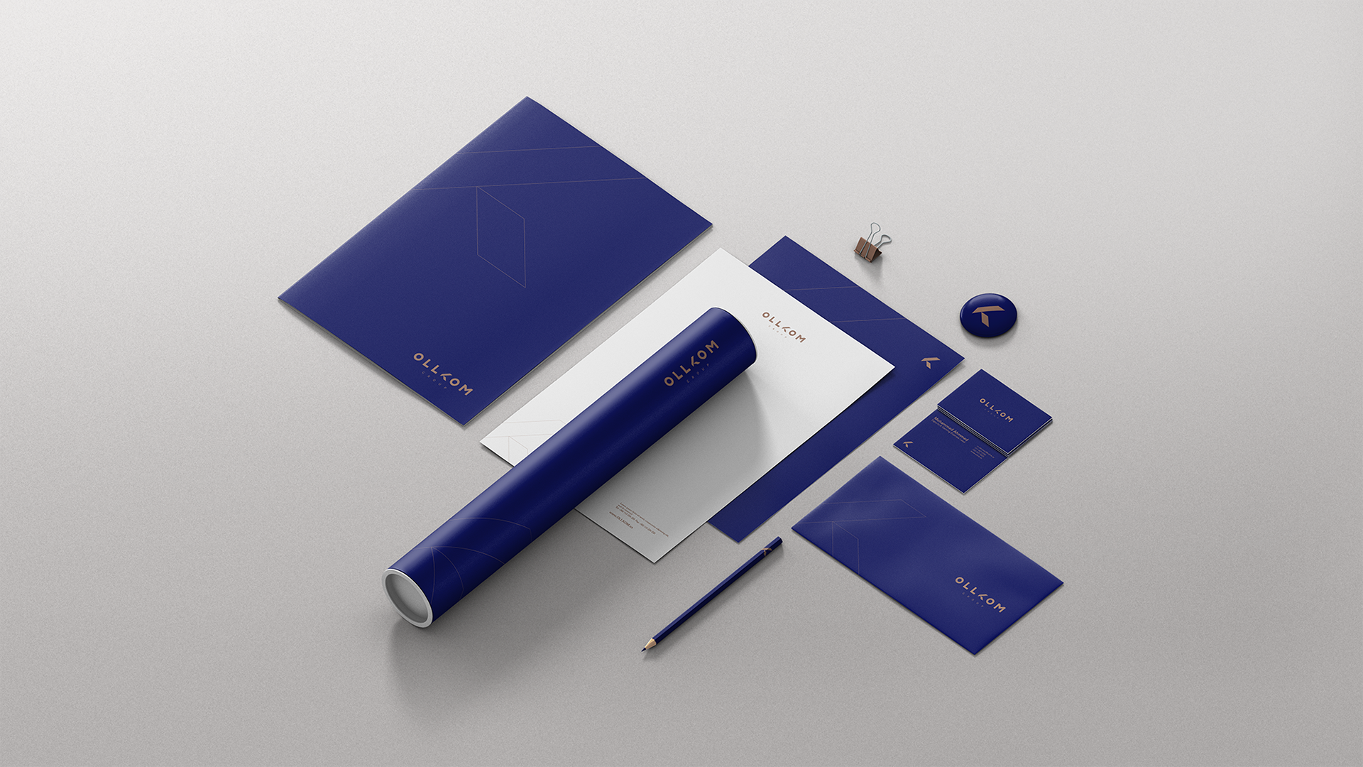 The logo features a refined color palette with dark blue and gold as the primary colors, supported by gray and light blue as secondary hues. These choices lend the brand an air of sophistication and opulence, evoking feelings of trust, professionalism, and exclusivity. The enhanced visual identity strengthens OLLKOM Group's positioning as a premium partner for businesses seeking top-tier services in logistics, ecommerce, advertising, and social media, reinforcing its appeal as a trusted and prestigious brand in its industry.